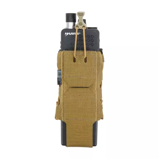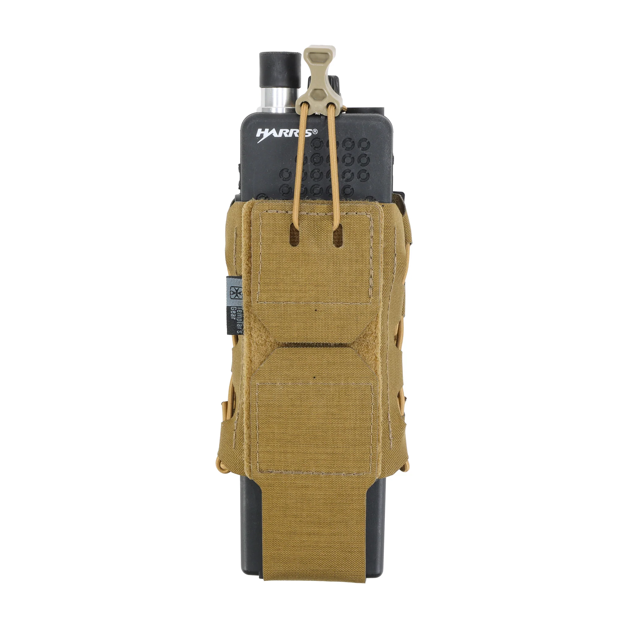 Velká sumka na vysílačku s upevněním MOLLE pro PRC148/152/atd. Konstrukce sumky umožňuje nastavit hloubku a šířku pro uložení různých typů osobních vysílaček se zajištěním v horní části elastickou šňůrou s úchytem. Výrobek je vyroben z odolného laminátu na bázi Cordura 500D s úpravou IRR.