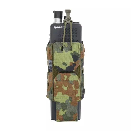 Velká sumka na vysílačku s upevněním MOLLE pro PRC148/152/atd. Konstrukce sumky umožňuje nastavit hloubku a šířku pro uložení různých typů osobních vysílaček se zajištěním v horní části elastickou šňůrou s úchytem. Výrobek je vyroben z odolného laminátu na bázi Cordura 500D s úpravou IRR.