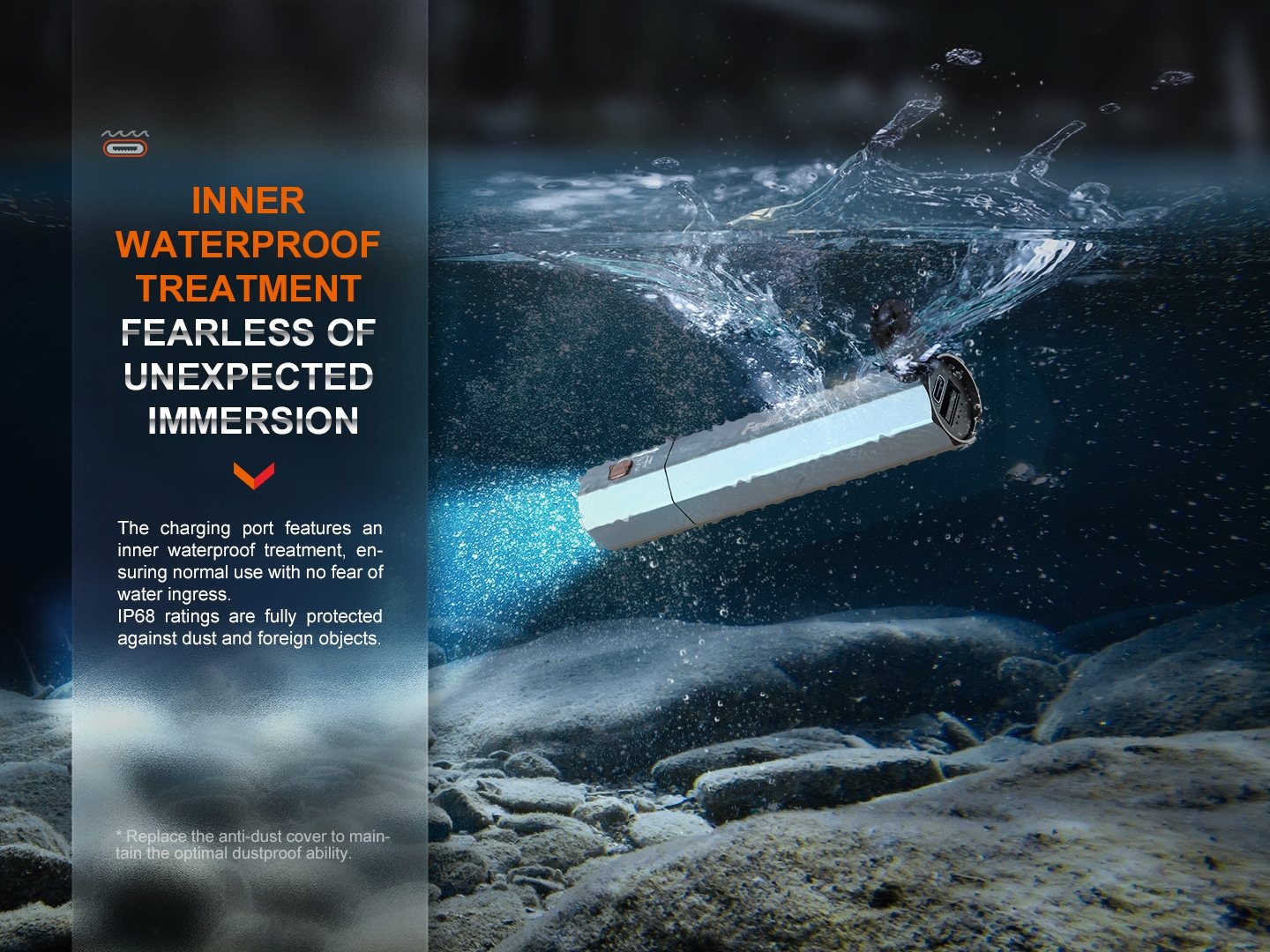 Fenix E-CP v sobě kombinuje funkci ruční svítilny se světelným tokem až 1600 lumenů a powebanky s kapacitou 5000 mAh. Napájení zajišťuje vestavěný Li-ion akumulátor o kapacitě 5000 mAh, který lze dobíjet prostřednictvím moderního USB-C konektoru. Světelná dioda Luminus SST-40 ukrytá pod TIR optikou dokáže dosvítit až na vzdálenost 222 metrů a v nejnižším režimu vydrží svítit až 504 hodin. Powerbanka podporuje rychlonabíjecí protokoly a dokáže nabíjet výkonem až 18W (5V/2,4A, 9V/2A, 12V/1,5A). Fenix E-CP je skvěle přenosná EDC svítilna a powerbanka v jednom, pro dobíjení vašeho mobilního telefonu a další přenosné elektroniky. Perfektně však zapadne například i do vašeho outdoor setu, pokud vyrážíte na delší dobu mimo dosah elektrické sítě.