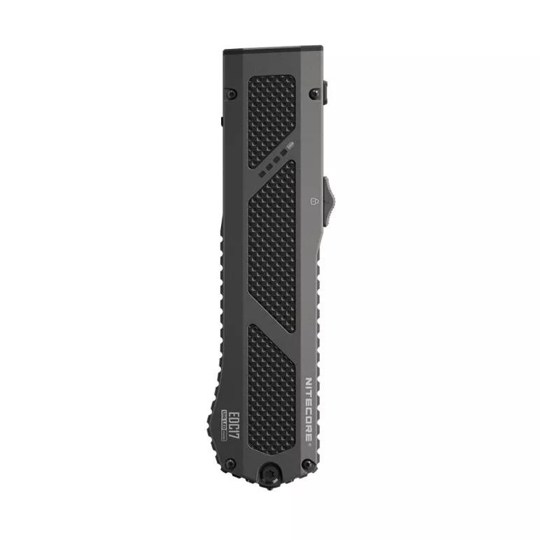 Nová malá ruční svítilna od společnosti Nitecore je tady. Tentokrát v podobě svítilny 3v1 s názvem EDC17. Ta kombinuje 4 intenzity bílého světla, 3 intenzity UV světla a zelený laser. Má koncepci nezvykle plochého tvaru vhodného pro každodení nošení. Ano, svítilna připomíná svým tvarem a posuvným tlačítkem vystřelovací nože Microtech. Jako zdroj světla využívá špičkové LED UHi 25. Díky výkonné LED má EDC17 dosvit až 230 metrů. Světelný tok je 1 500 lumenů a intenzita světelného kuželu je až 12 400 candela.