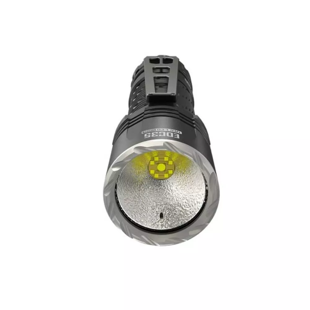 EDC35 je nová vysoce výkonná taktická svítilna od společnosti Nitecore. Je to větší a výkonější svítilna oproti původní verzi EDC33. Nabíjecí svítilna s vysokým světelným výkonem 5000 lm (75 700cd) a dosvitem 550 metrů za použití OP reflektoru a nové LED od společnosti Nitecore s názvem NiteLab UHi40 LED MAX. Ta má jednu hlavní LED (zajišťuje daleký dosvit) a 8 pomocných LED pro široký svit světla. K ovládání svítilny slouží intuitivní taktický spínač nacházející se na konci svítilny. EDC35 lze uzamknout posuvným tlačítkem nacházejícím se pod spínačem svítilny ON/OFF. Je to volitelná ochrana proti nechtěnnému sepnutí svítilny v kapse nebo zavazadle. Pokud by k sepnutí svítilny i tak došlo, v reflektoru je umístěn senzor vzdálenosti, který indikuje před svítilnou překážku a EDC35 se automaticky utlumí na nižší režim.