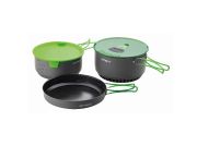 I ten nejlepší vařič potřebuje vhodné nádobí, aby dokázal více než jen vypadat hustě. Stejně jako ostatní sady nádobí OPTIMUS, i Terra Camp 4 Pot Set je vyroben z tvrdě anodizovaného hliníku s inovovaným nepřilnavým povrchem a co do robustnosti velmi dobře koresponduje se spolehlivými campingovými vařiči OPTIMUS. Velkou předností této sedmidílné sady je její hmotnost odpovídající pouhým 1160 g. Sada obsahuje pánev na smažení, silikonový kryt, hrnec 2,3 l, protioděrovou podložku, plastové víko, hrnec 3,2 l s tepelným výměníkem a transportní termoobal. Tepelný výměník zkracuje dobu vaření až o 30 %, čímž snižuje spotřebu paliva. Složitelné rukojeti usnadňují balení, avšak zajišťují stabilitu při manipulaci s nádobím. Průhledné víko umožňuje vizuální kontrolu vaření a díky otvorům pak snadno poslouží coby cedník při slévání vody z těstovin.