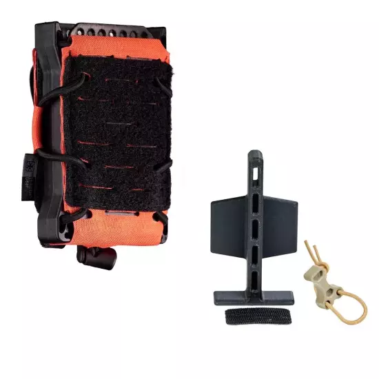 Vyrobeno z ABS plastu vyztuženého skelnými vlákny (vytištěno 3D tiskem) pro odolnost a nízkou hmotnost. Nastavitelné pro širokou škálu pistolových a PM zásobníků v různých výškách.