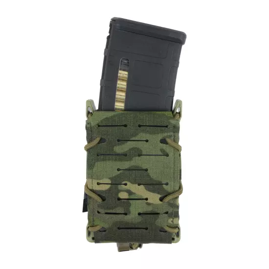 Univerzální samosvorná sumka s laserem řezaným Molle systémem. Tvar sumky udržuje postranní polymerový rám. Díky důmyslnému systému svoru pojme sumka většinu puškových zásobníků včetně zásobníků pro AR, AK i SA58. Pouzdro zajišťuje zásobník samosvorem, takže není potřeba žádná další pojistka, jako krycí chlopeň, nebo zajišťující šňůrka. Laserem řezaná Molle vazba poskytuje nižší profil sumky a elegantní vzhled.
