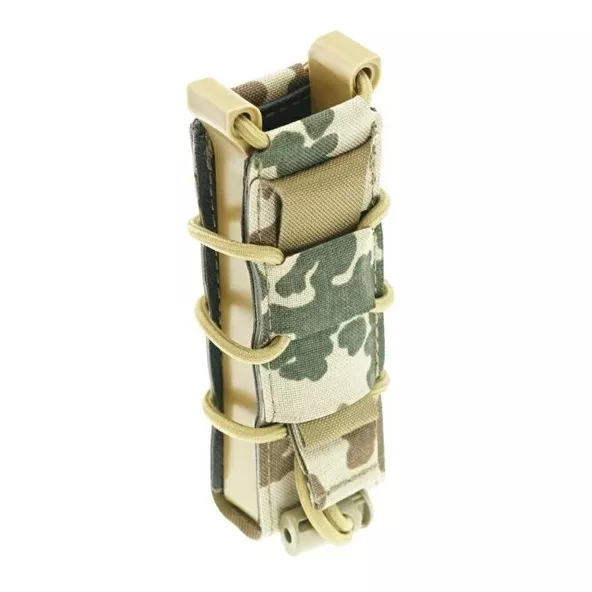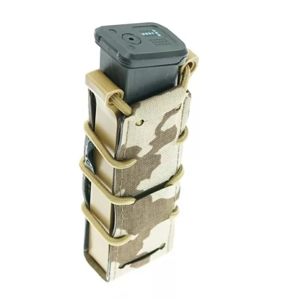 Samosvorná sumka s laserem řezaným MOLLE systémem. Tvar sumky udržuje postranní polymerový rám. Pouzdro zajišťuje zásobník samosvorem, takže není potřeba žádná další pojistka, jako krycí chlopeň, nebo zajišťující šňůrka. Laserem řezaná Molle vazba poskytuje nižší profil sumky a elegantní vzhled.