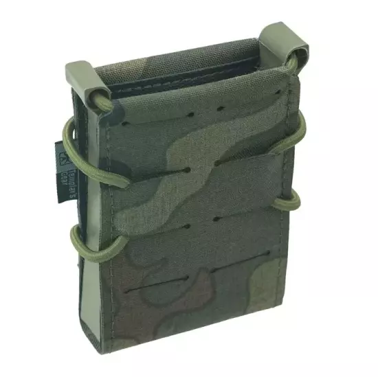Univerzální samosvorná sumka s laserem řezaným MOLLE systémem. Tvar sumky udržuje postranní polymerový rám. Díky důmyslnému systému svoru pojme sumka většinu puškových zásobníků včetně zásobníků pro AR, AK i SA58. Pouzdro zajišťuje zásobník samosvorem, takže není potřeba žádná další pojistka, jako krycí chlopeň, nebo zajišťující šňůrka. Laserem řezaná Molle vazba poskytuje nižší profil sumky a elegantní vzhled.