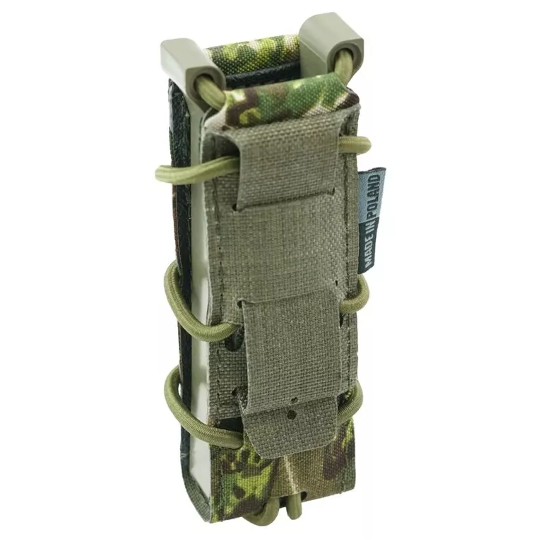 Samosvorná sumka s laserem řezaným Molle systémem. Tvar sumky udržuje postranní polymerový rám. Pouzdro zajišťuje zásobník samosvorem, takže není potřeba žádná další pojistka, jako krycí chlopeň, nebo zajišťující šňůrka. Laserem řezaná Molle vazba poskytuje nižší profil sumky a elegantní vzhled.