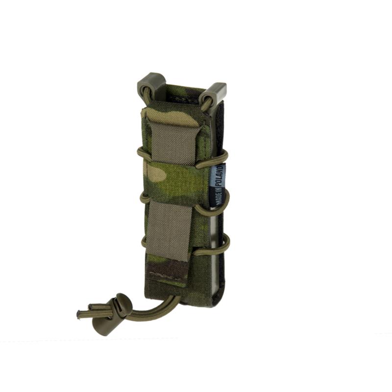 Samosvorná sumka s laserem řezaným MOLLE systémem. Tvar sumky udržuje postranní polymerový rám. Pouzdro zajišťuje zásobník samosvorem, takže není potřeba žádná další pojistka, jako krycí chlopeň, nebo zajišťující šňůrka. Laserem řezaná Molle vazba poskytuje nižší profil sumky a elegantní vzhled.