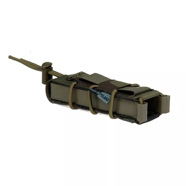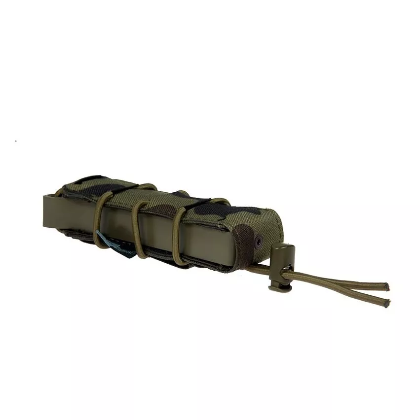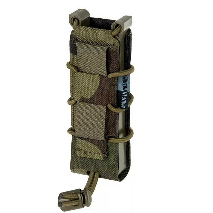 Samosvorná sumka s laserem řezaným MOLLE systémem. Tvar sumky udržuje postranní polymerový rám. Pouzdro zajišťuje zásobník samosvorem, takže není potřeba žádná další pojistka, jako krycí chlopeň, nebo zajišťující šňůrka. Laserem řezaná Molle vazba poskytuje nižší profil sumky a elegantní vzhled.