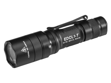 Svítilnu SUREFIRE EDCL1-T je lehká, kompaktní, výkonná LED svítilna se světelným výkonem až 500 lumenů za pomoci jedné baterie typu CR123A (je součástí balení). SureFire EDCL-1 je vylepšená verze bestselleru od Surefire E1B Backup. Její velikost napovídá, že je tato svítilna určena ke každodennímu nošení. Jako zdroj světla je zde použita vysoce výkonná LED dioda, prakticky imunní vůči selhání, protože tam není žádné vlákno, které by mohlo shořet nebo prasknout. Technologie TIR (Total Internal Reflection) vytváří kužel světla s velmi dobrým dosvitem a zároveň periferním světlem pro krátké a středně dlouhé použití. EDCL1-T disponuje dvěmi režimy svícení. Vysoký výkon má až 500 lumenů, což je víc než dost světla na EDC svítilnu této velikosti k dočasnému ochromení protivníkova zraku přiviknutého na tmu. Nízký režim svitu o síle 5 lumenů dostačuje na osvětlení místnosti a blízkého okolí, výrazně prodlužuje dobu použití svítilny. Doba svícení je více jak 1 hodinu na 500 lumenů, na 5 lumenů dokáže svítilna fungovat až po dobu 45 hodin. Namáčktnutím aktivujete dočasné svícení na nízký výkon a úplným zmáčknutím spustíte dočasné svícení na maximální výkon. Stálé světlo aktivujete utahováním patního spínače. Svítilna je vyrobena z eloxovaného vysoce odolného leteckého hliníku, je odolná proti korozi a opotřebení. Čočka svítilny je z tvrzeného skla s ochrannou vrstvou proti poškrábání a maximální propustností světla. Svítilna je opatřena gumovými O kroužky, které ji tvoří odolnou vůči prachu, špíně a vlhkosti. Hmotnost: cca 93,5 g, délka svítilny cca 114 mm.