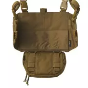 Chicom Chest Rig má výrazný design a tři kapsy se zapínáním na suchý zip. Klapky lze odejmout a nahradit stahováky, které jsou součástí sady. Do náprsních kapes se vejdou zásobníky AK/AR. Toto je základní verze, kterou lze mnoha způsoby rozšířit. Na obou stranách, zevnitř i zvenku, jsou panely MOLLE/PALS, na které můžete umístit další sumky, pouzdra na granáty atd. Počet přihrádek na náboje lze v případě potřeby zvýšit ze tří na pět. Navíc lze pod hrudní návazec připevnit lékárničku nebo malou kapsičku. Uvnitř Chicomu je plochá kapsa na dokumenty nebo panely ze systému Helikon VIS, polstrovaná měkkým suchým zipem.