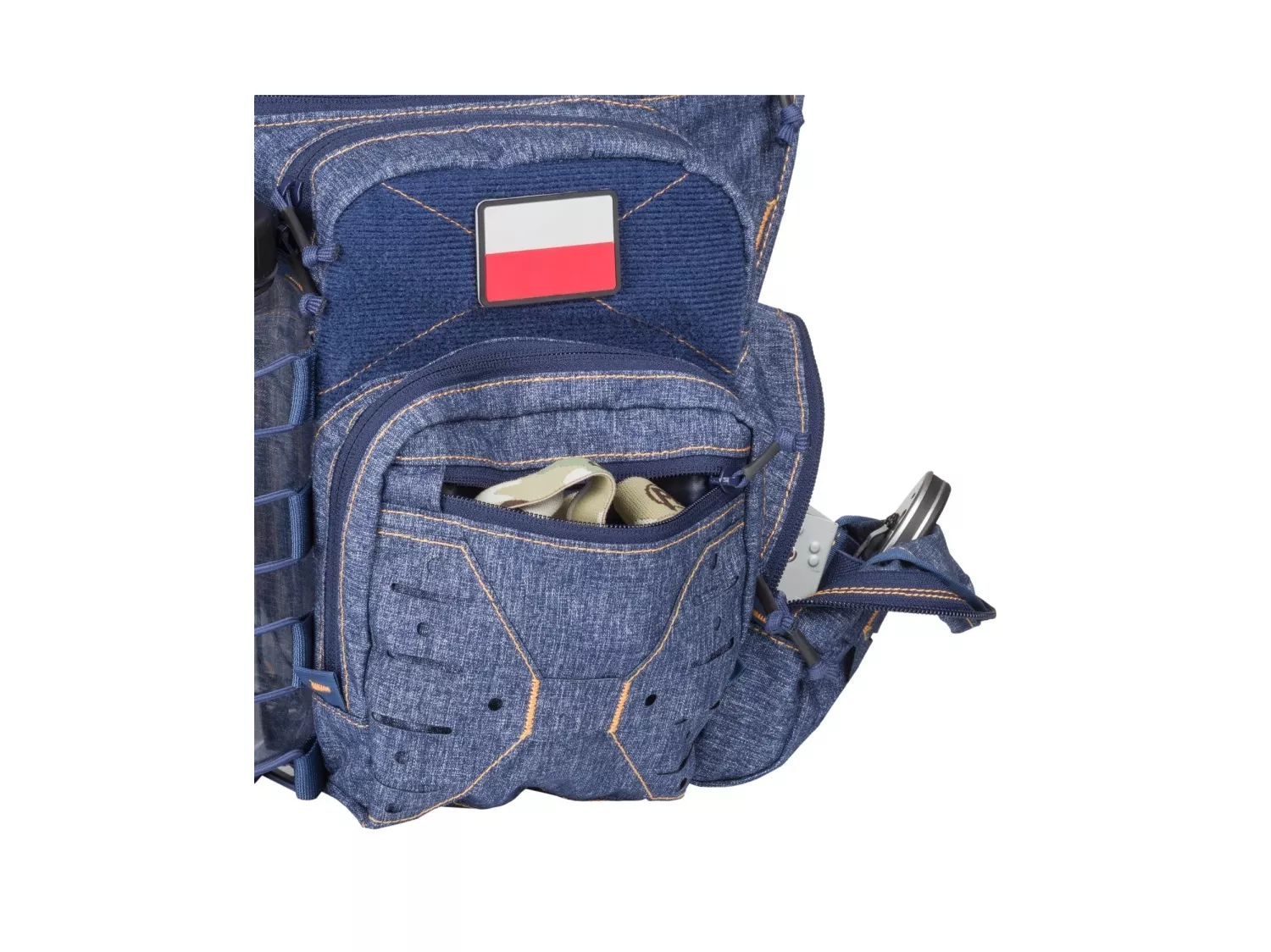 Přední, laserem řezaný systém MOLLE / PALS poskytuje prostor pro další vybavení. Taška má další skrytou kapsu, kterou lze použít k nošení plné zbraně (pistole nebo revolveru). Kapsu lze také použít k připevnění libovolných položek kompatibilních s Versatile Insert System.