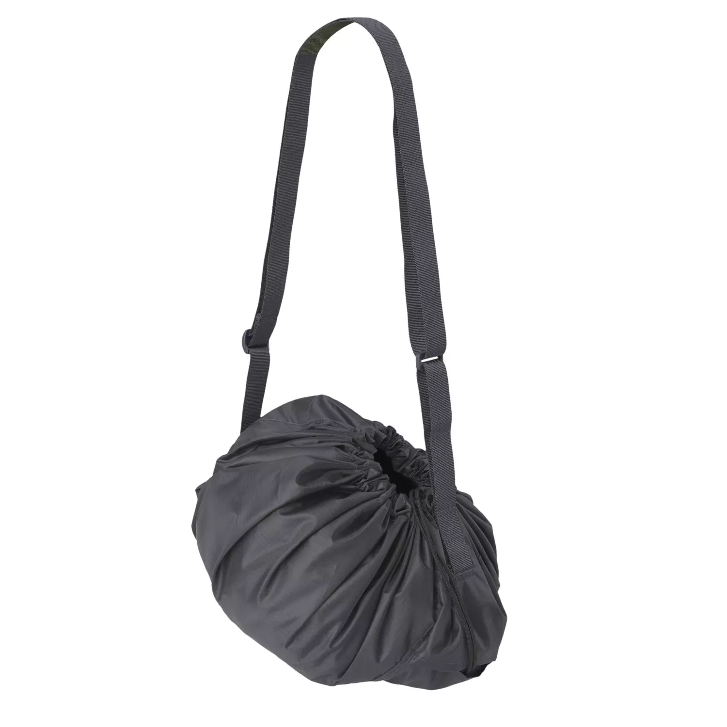 V případě nouze zatáhněte za šňůrku všitou do okrajů tašky a ta se okamžitě promění v jednoduchou únikovou tašku. Malé předměty, které by mohly vypadnout, lze uložit do ploché kapsy na zip uvnitř tašky. Mezi další výhody patří velmi malá velikost po složení a nastavitelný popruh na přenášení.
