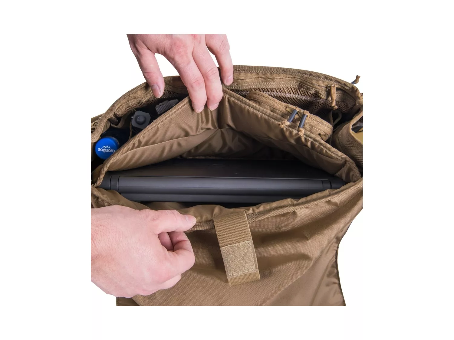 Návrháři věnovali zvláštní pozornost vnitřnímu uspořádání kapes a komor městské tašky. Samostatná, podšitá a suchým zipem uzavíratelná kapsa bezpečně ochrání notebook. Kapsa na zip pod klopou obsahuje panel na suchý zip, kompatibilní s Versatile Insert System. Samostatná vnější kapsa na zip uvnitř klopy umožňuje přístup k často používaným věcem, aniž byste museli klopu otevírat. Panel se suchým zipem lze použít pro personalizaci. Na zadní straně tašky, ze strany těla, je další diskrétní kapsa na zip. Případného zloděje neláká, když je taška blízko těla, kapsa je tedy velice bezpečná a přístup k ní je rovněž omezený. Pro další ochranu obsahu můžete kapsu naplnit jedním z pouzder Helikon kompatibilních s VIS.