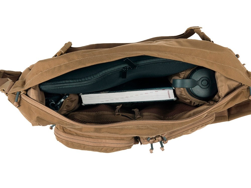 Odolné látky a popruh na přenášení umožňují pohodlné nošení - i když je taška plná těžkého vybavení. Design umožňuje rychlý přístup k obsahu. K dispozici jsou čtyři vnější kapsy na zip. Přední část tašky má také vsazenou kapsu se suchým zipem. Hlavní komora má dvě vnitřní síťované kapsy na zip, dvě kapsy s uzávěrem na gumičku a velký panel na suchý zip pro připevnění jakékoli vložky kompatibilní s Versatile Insert System z katalogu Helikon-Tex. Universal Carrying Strap ® slouží jako nosný popruh. Několik poutek PALS umožňuje připevnit k řemínku další vaky nebo šňůrky. Spony umožňují použití stejného popruhu k nošení dalších tašek Helikon.