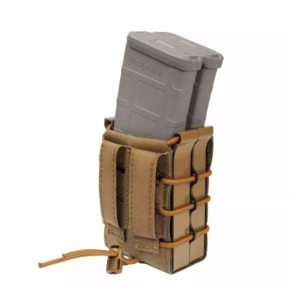 Univerzální samosvorná sumka s laserem řezaným MOLLE systémem. Tvar sumky udržuje postranní polymerový rám. Díky důmyslnému systému svoru pojme sumka většinu puškových zásobníků včetně zásobníků pro AR, AK i SA58. Pouzdro zajišťuje zásobník samosvorem, takže není potřeba žádná další pojistka, jako krycí chlopeň, nebo zajišťující šňůrka. Laserem řezaná Molle vazba poskytuje nižší profil sumky a elegantní vzhled.