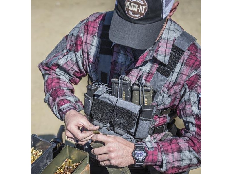 Triple Carbine Insert je přídavný sumkový panel pro Helikon Competition MultiGun Rig, určený přímo do vyhrazené kapsy. Pojme tři puškové zásobníky (standardní typ AR/AK). Sumky jsou částečně vyztužené pro lepší manipulaci se zásobníky. Protiskluzový interiér zabraňuje vypadnutí zásobníku.