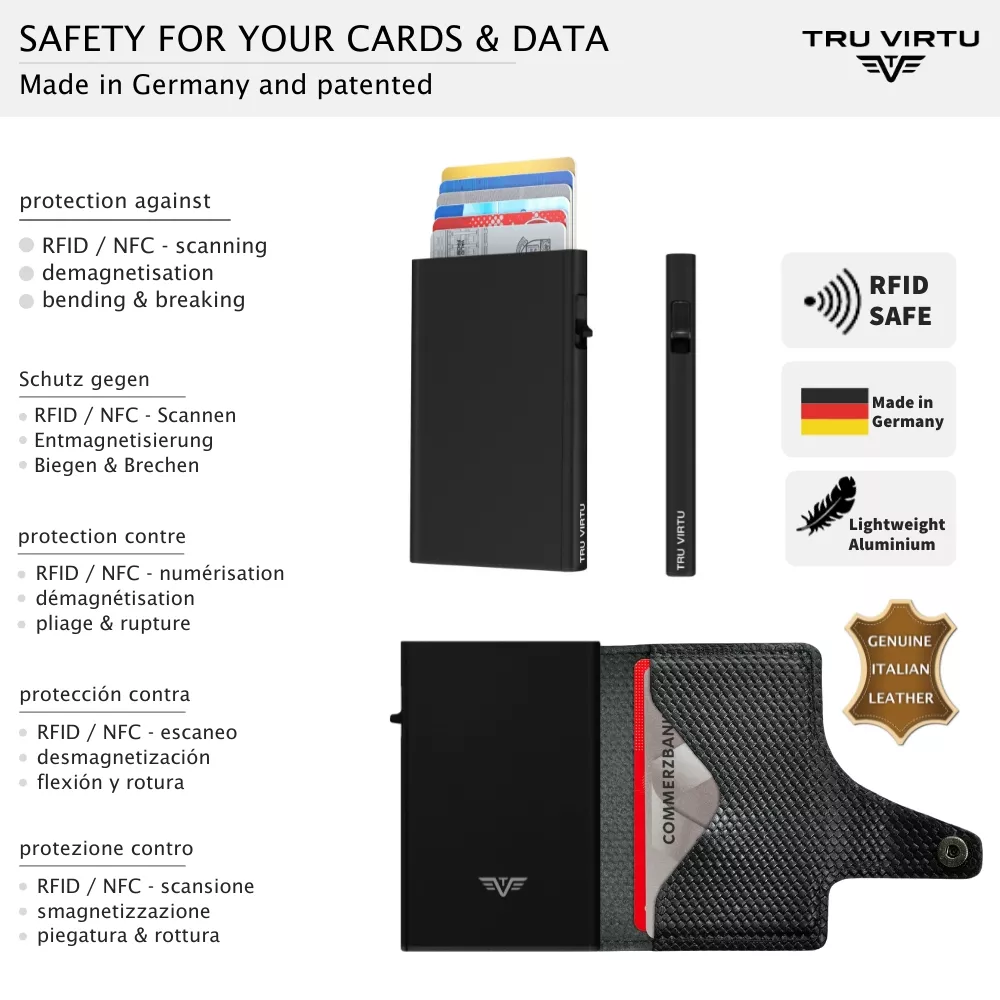 TRU VIRTU - peněženka CLICK & SLIDE, Diagonal Carbon Black