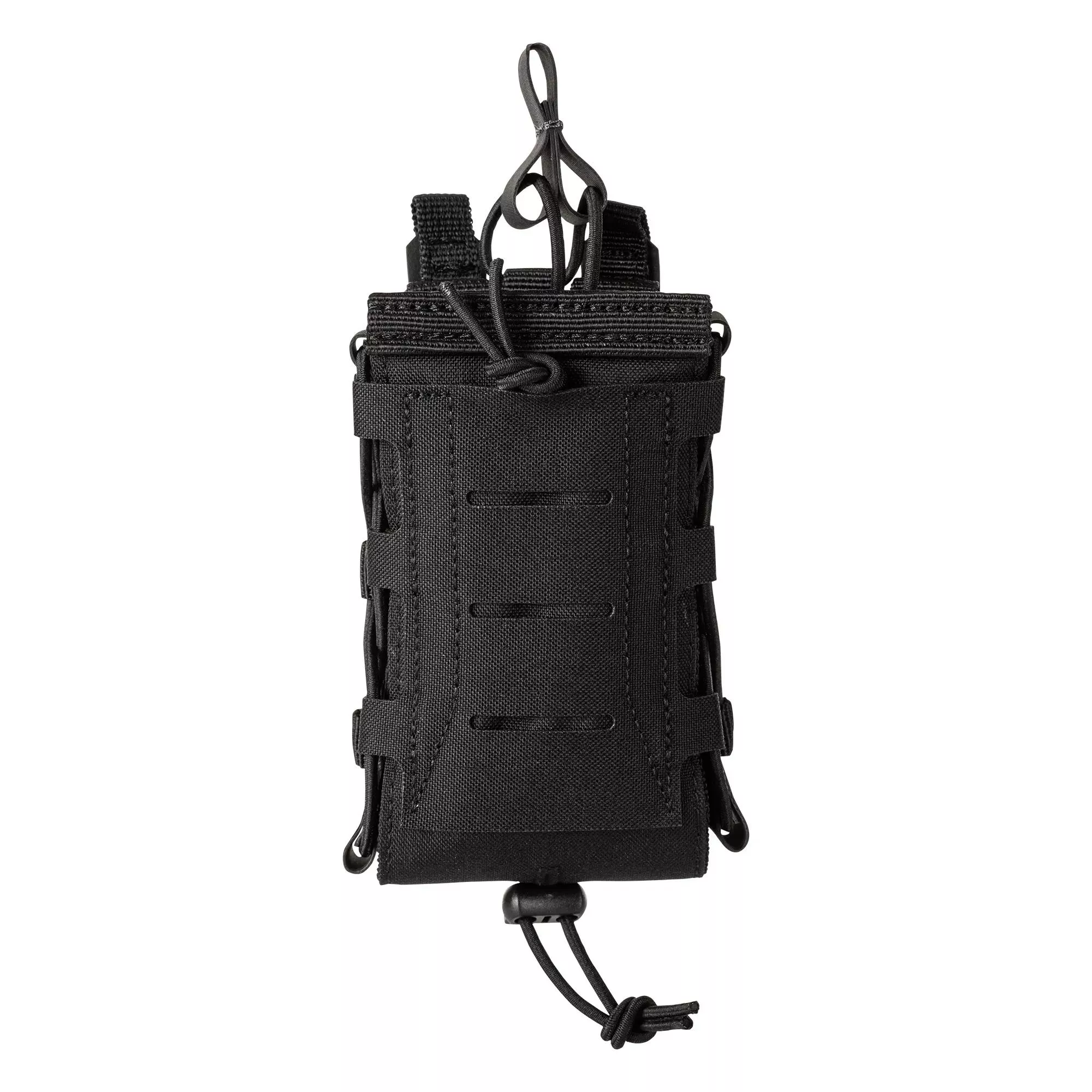 Technologie Flex-HT™ poskytuje všestrannost montáže a snadné upevnění na všech platformách. Přední a spodní panely jsou dvouvrstvé s 500D pro extra odolnost. Součástí je alternativní horní bungee retenční systém. Odtokový otvor zabudovaný ve spodním panelu zvyšuje pohodlí, zatímco spolehlivá spona Duraflex® GC poskytuje extra bezpečnost. Bez ohledu na velikost Vašeho zásobníku, 5.11 to zmákne.