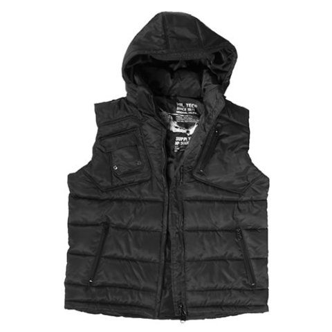 Příjemná teplá vesta Mil-tec s odnímatelnou kapucou a praktickými kapsami a dvoucestným zipem.