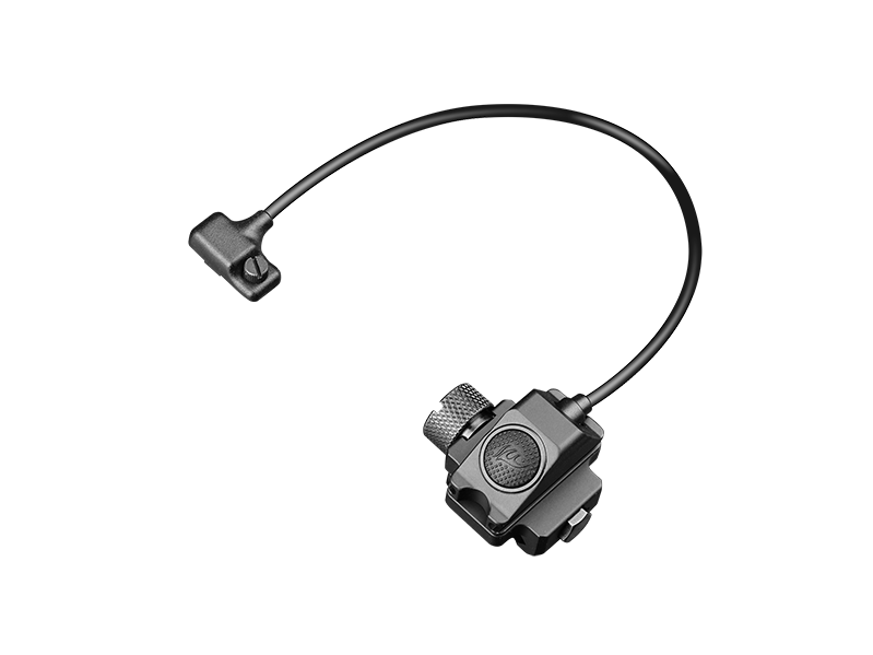 - Na konci kabelu je umístěn tlačítkový taktický spínač v úhlu 45° s možností momentální aktivace namáčknutím.
