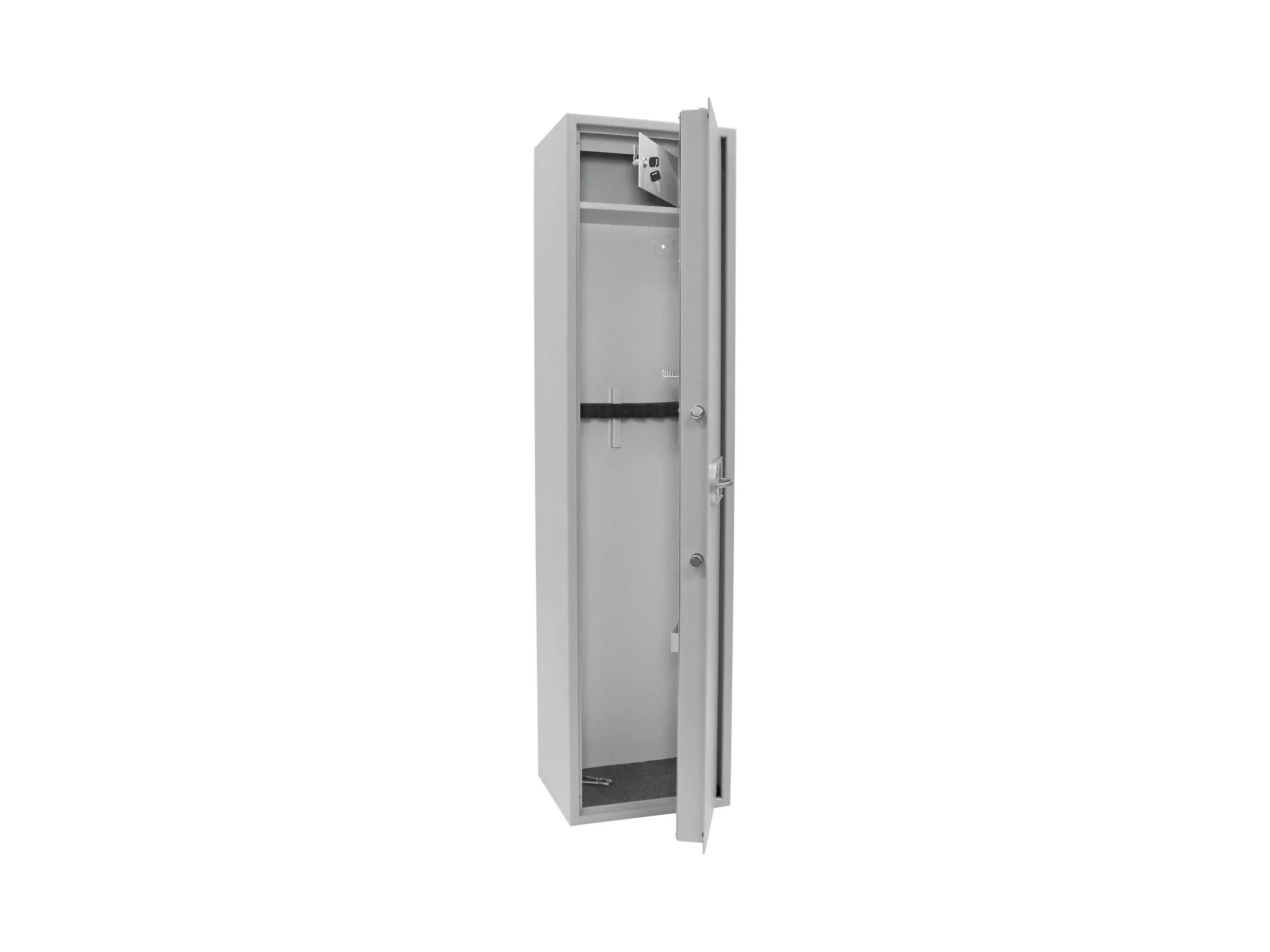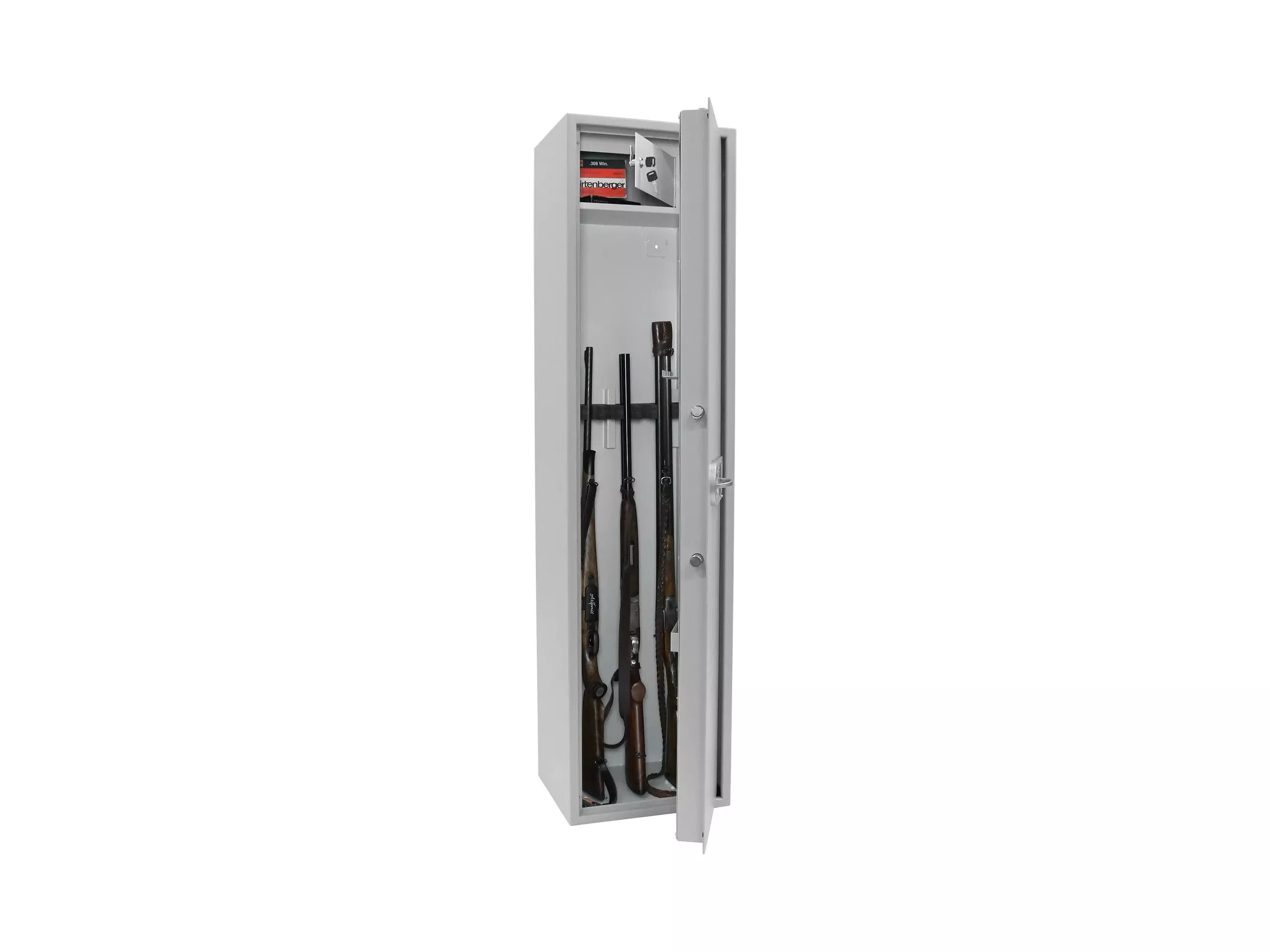 Skříň pro uschování až 8 dlouhých zbraní v nabídce. Skříň na zbraně Yukon disponuje certifikovaným elektronickým zámkem, který je napájen 1 x 9V baterií (není součástí balení). Skříň má certifikát bezpečnostní třídy S1 ČSN EN 14450) a dodává se v jednoplášťovém provedení. Uvnitř skříně se nachází nitřní schránka s cylindrickým zámkem a držák pro nářadí pro čištění zbraní. Materiál pro ukotvení je součástí balení.